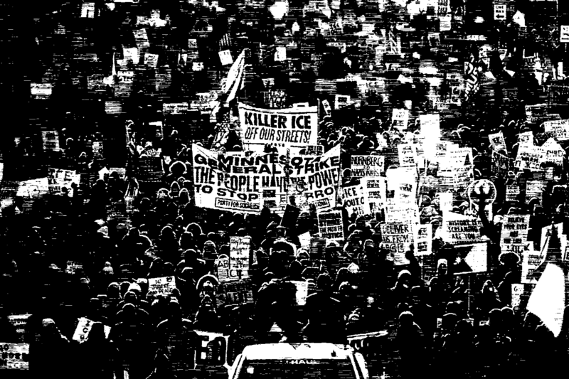 Um diesen Forderungen Ausdruck zu verleihen, blieben am Freitag über 700 Geschäfte geschlossen, Tausende blieben der Arbeit fern und Zehntausende demonstrieren auf der Strasse. Eine breite Allianz aus Gewerkschaften, Kleinunternehmen, Geistlichen verschiedener Glaubensrichtungen und unzähligen Aktivist*innen aus der Zivilgesellschaft organisierten den Streik. Ganztags protestierten in der Hauptstadt Minneapolis Zehntausende bei minus zwanzig Grad auf den Strassen, organisierten zivile Schutz-Patrouillen in Nachbarschaften und legten den Flughafen lahm. Inspiriert durch den Streik kam es in 300 weiteren Städten zu Arbeitsniederlegungen und Demonstrationen.